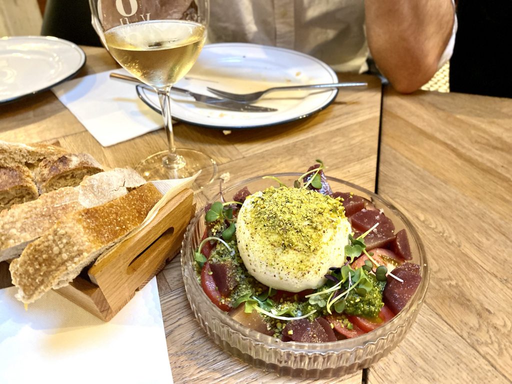 Vi beställde in flera olika maträtter som spansk omelett, kanariska papas arugadas med mojosåser, ostar, men allra godast var ovan Burrata med tomater.