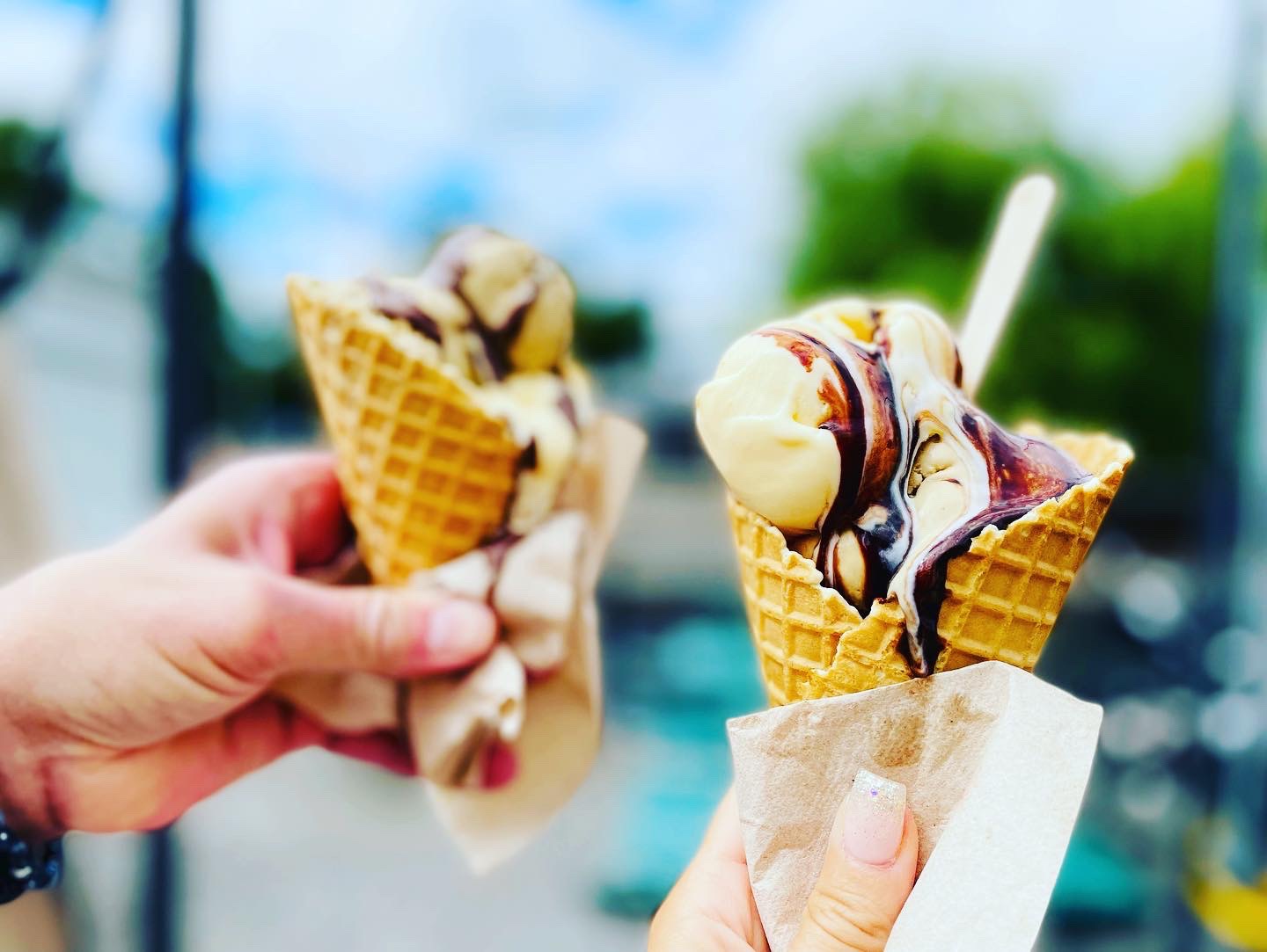 Maken är inte ett liks stort glassmonster som mig, så han nöjde sig med två kulor. Helt klart sommarens godaste glass.