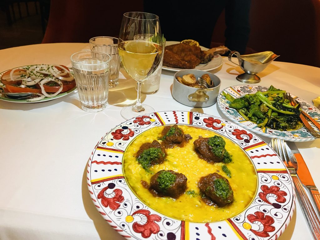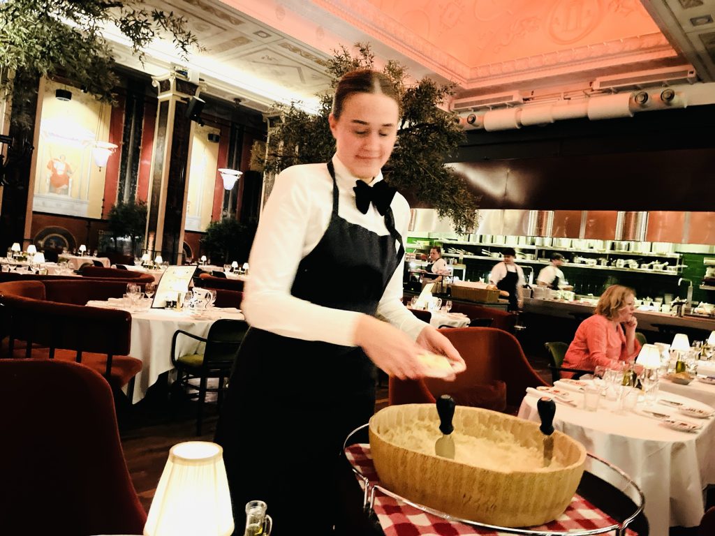 Innan maten kom de med deras gigantiska parmesan ost och serverade vid bordet.