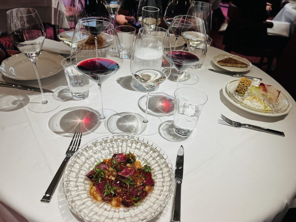 Menyn rör sig fritt mellan ursprung och teknik, med ett internationellt uttryck som speglas i allt från förrätter och tillbehör till själva grillen. Vinlistan fokuserar på den gamla världen och USA. Vi fick nöjet att avnjuta tre olika viner som passade till de rätterna som vi åt.