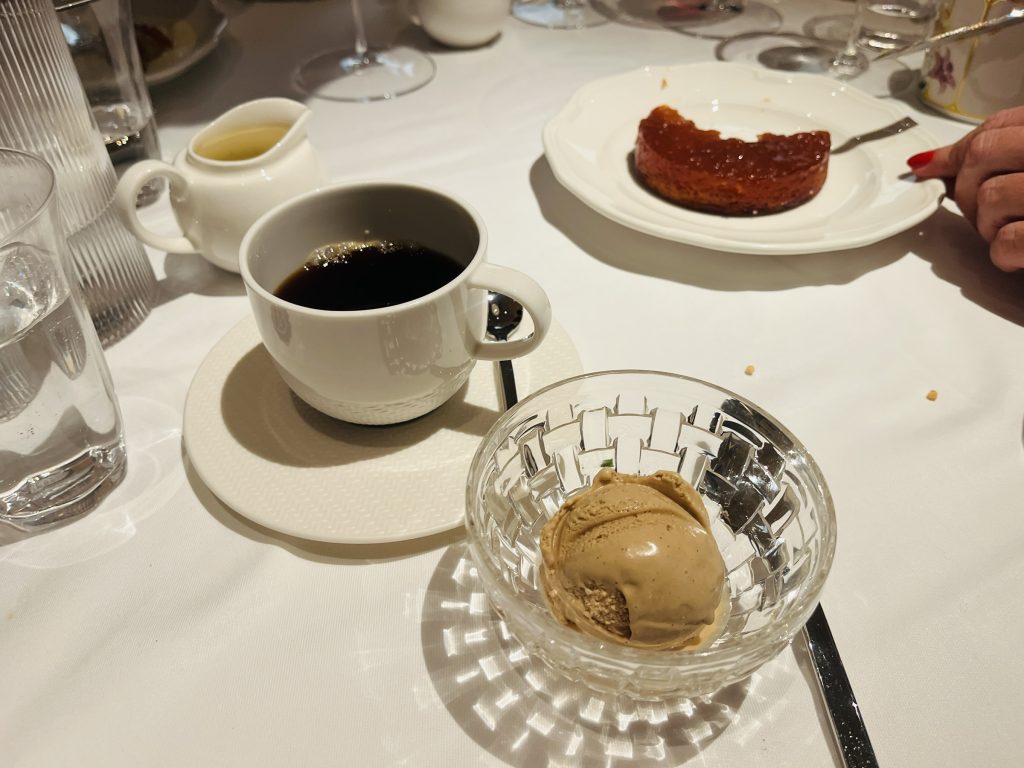 Till dessert åt vi en Tarte tartin med vaniljsås och glass.