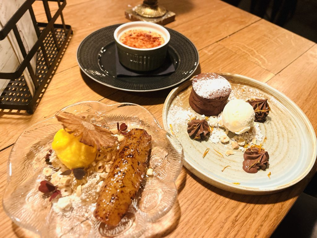 Favoriten blev nog deras Nogautfyllda chokladfondant med chokladkräm, vaniljglass och karimelliserade hasselnötter. Maken åt en klassiskt men väldigt god Crème brûlée. Det är ju alltid gott!
