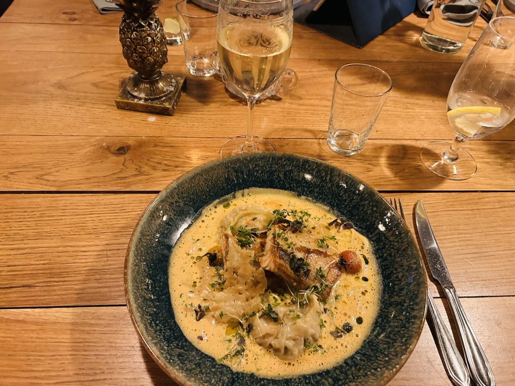 Jag som älskar fisk åt deras smörstekta gös med dumplings på hummer och kräfta med en krämig hummersås. De hade verkligen lyckats bra med smakkombinationerna här också.