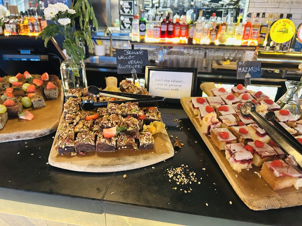 Det var också väldigt bra utmärkt. Så för mig som inte äter gluten fanns jag direkt några goda desserter, utan att behöva fråga. De hade också veganska alternativ för sonen som är allergisk mot mjölkprotein och ägg.