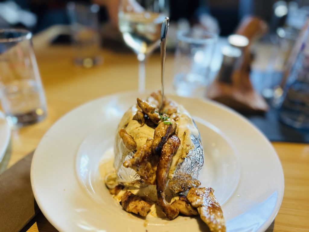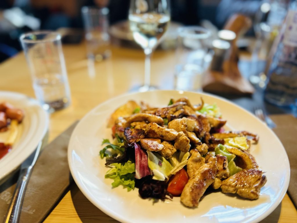 Menyn är blandad. Det finns alltifrån bakad potatis med olika fyllningar, till sallader, soppor och österrikiska korvar med pommes.