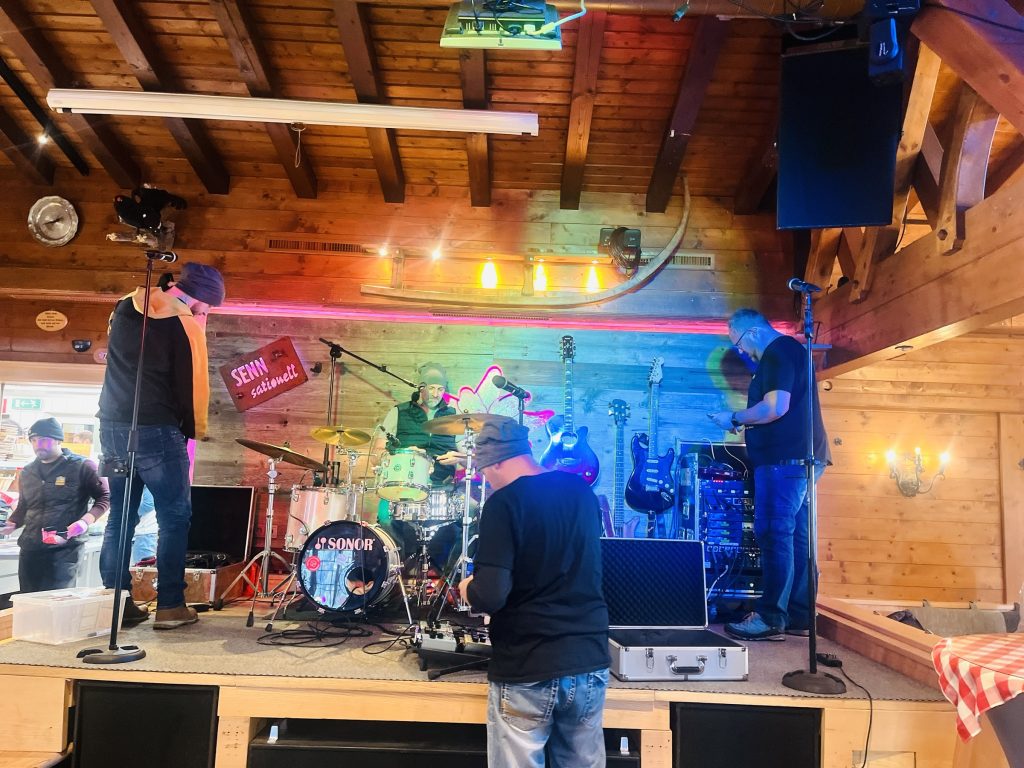 Vi var inte kvar ändå till 15 tiden när live-bandet börjat spelade, men vi fick det stora nöjet och höra lite medan de repade. Sennhütte kan man säga är både en bra lunchrestaurang mitt i skidbacken, med ski in ski out. Liksom ett trevligt After Ski ställe.
