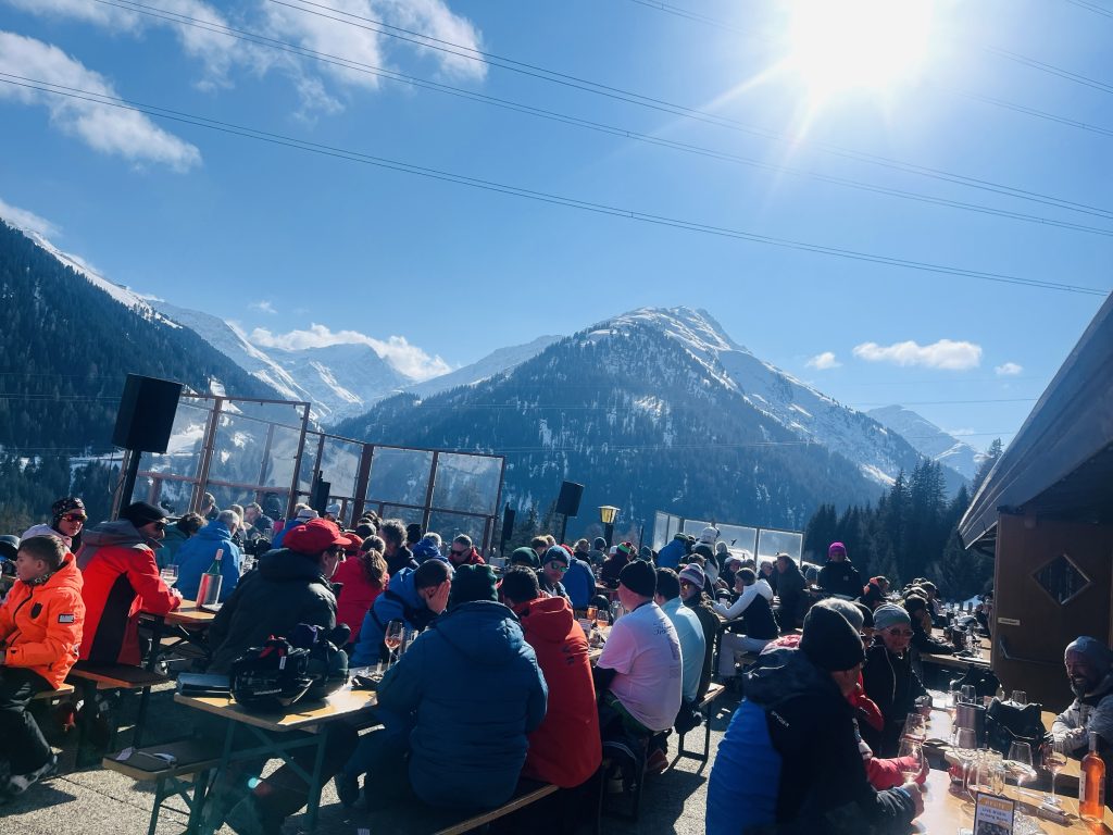 Restaurangen är mäkta populär, så det gäller att vara här före klockan 12 på dagen för att norpa ett bord i solen. Att äta en lunch eller ta ett glas vin eller en öl utomhus, et är väl ändå bland det bästa som finns i Alperna när man åker skidor.
