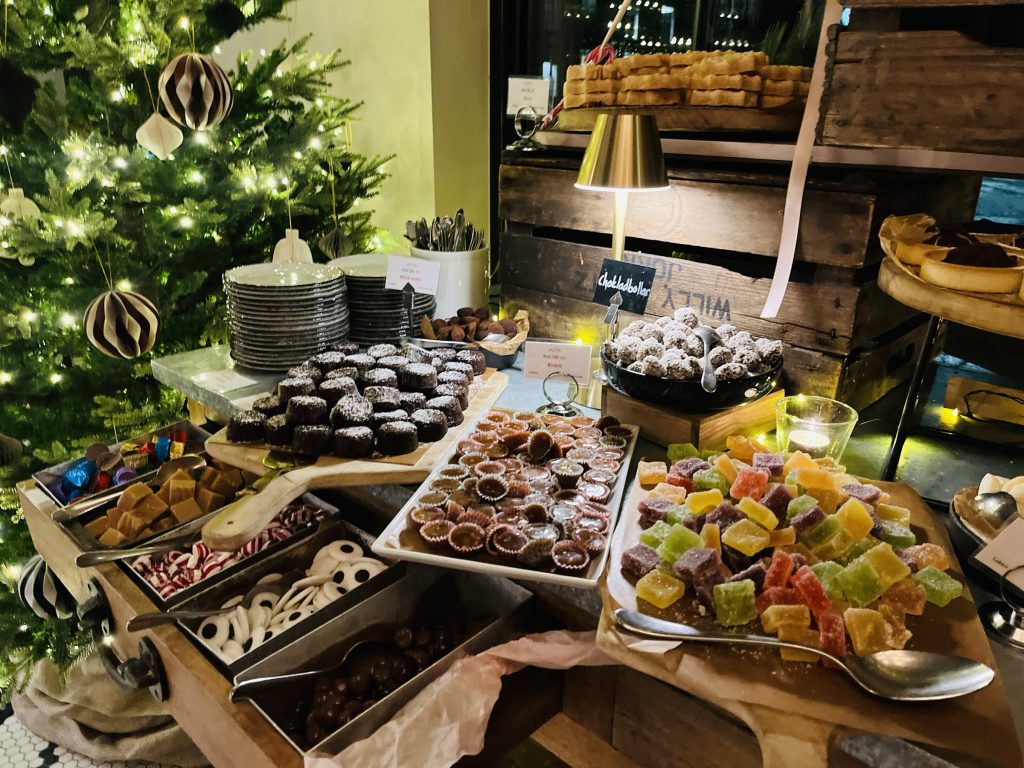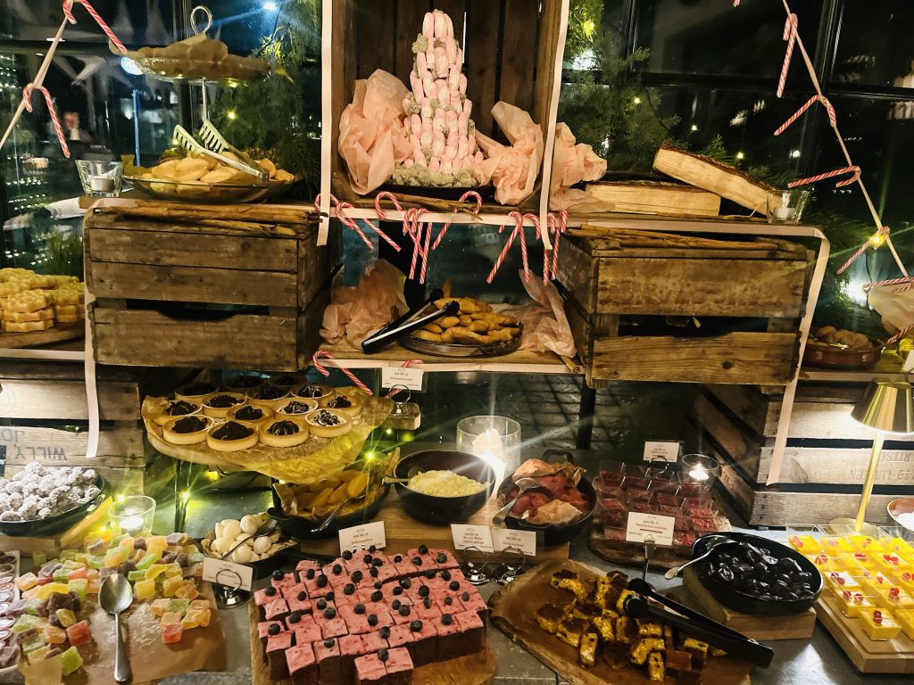 Allt som hör julen till. Allt ifrån klassisk ris a la malta och saffrans kladdkaka med grädde till chokladbollar och julgodis så som goda mintkyssar, ischoklad, knäck, skumtomtar, risbräck och massa annat som var smaskens.