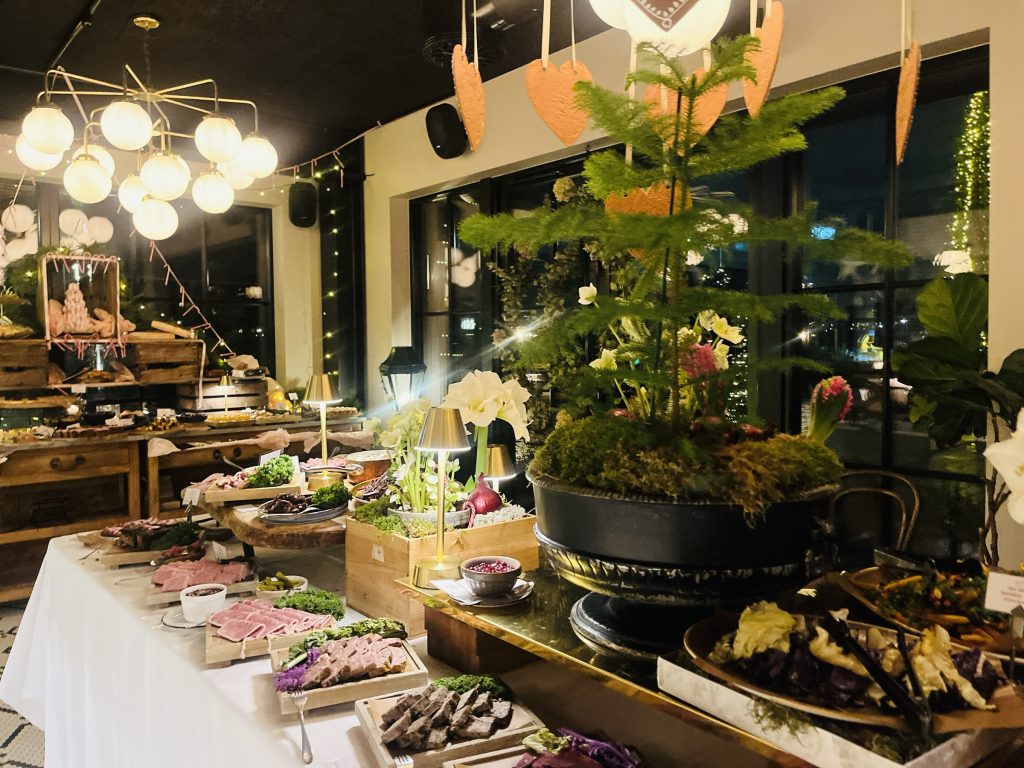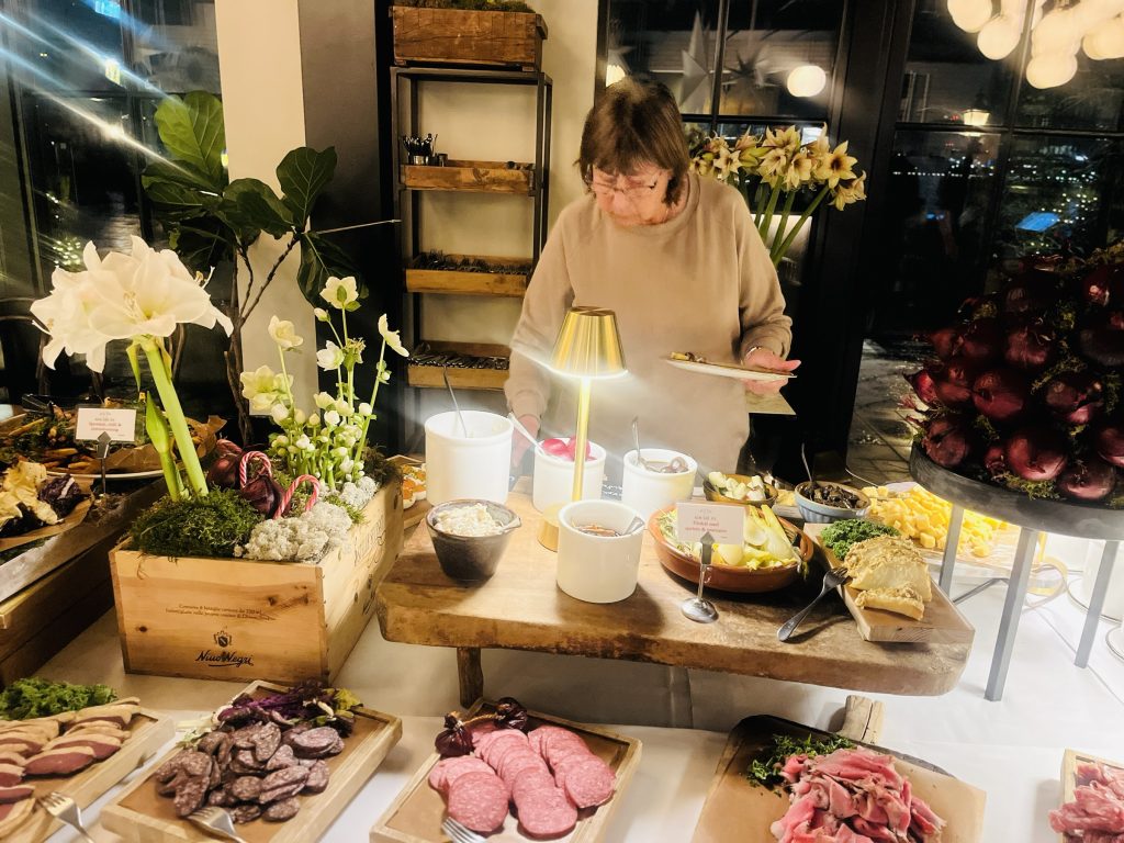 Det var en exklusiv lyxig julbuffé , som var uppdelad i tre delar. Det blev en smakfest för alla sinnen! Bland förrätterna eller det kalla fanna det goda sallader, charkuterier, nybakat bröd med ostar från utvalda sortiment. Det fanns också flera olika sorters sill och julskinka. Även lax och en god skagenröra och ägghalvor. Massor med gott med andra ord. Min favorit var spetskålen i chili och skagenröran. Medan mamma älskade laxen med romsås.