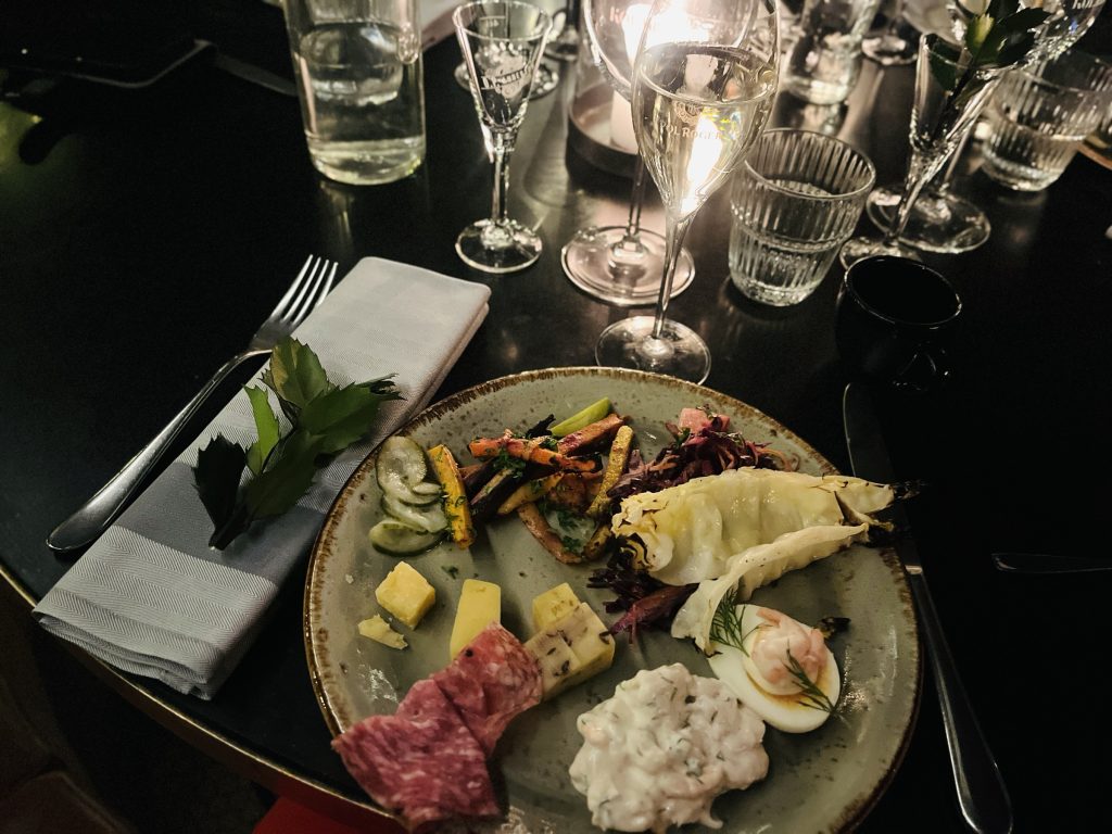 Julbord på restaurang Kolmilan börjar med Glögg och pepparkakor vid den mysiga baren. Det fanns både glögg med alkohol eller alkoholfritt alternativ att välja mellan.