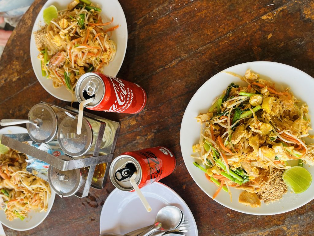 Vi åt alla den klassiska thairätten Phad Thai. Jag åt med kyckling och de andra med räkor.